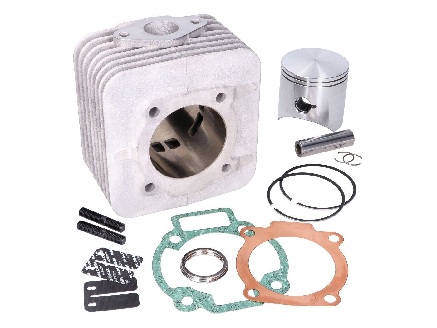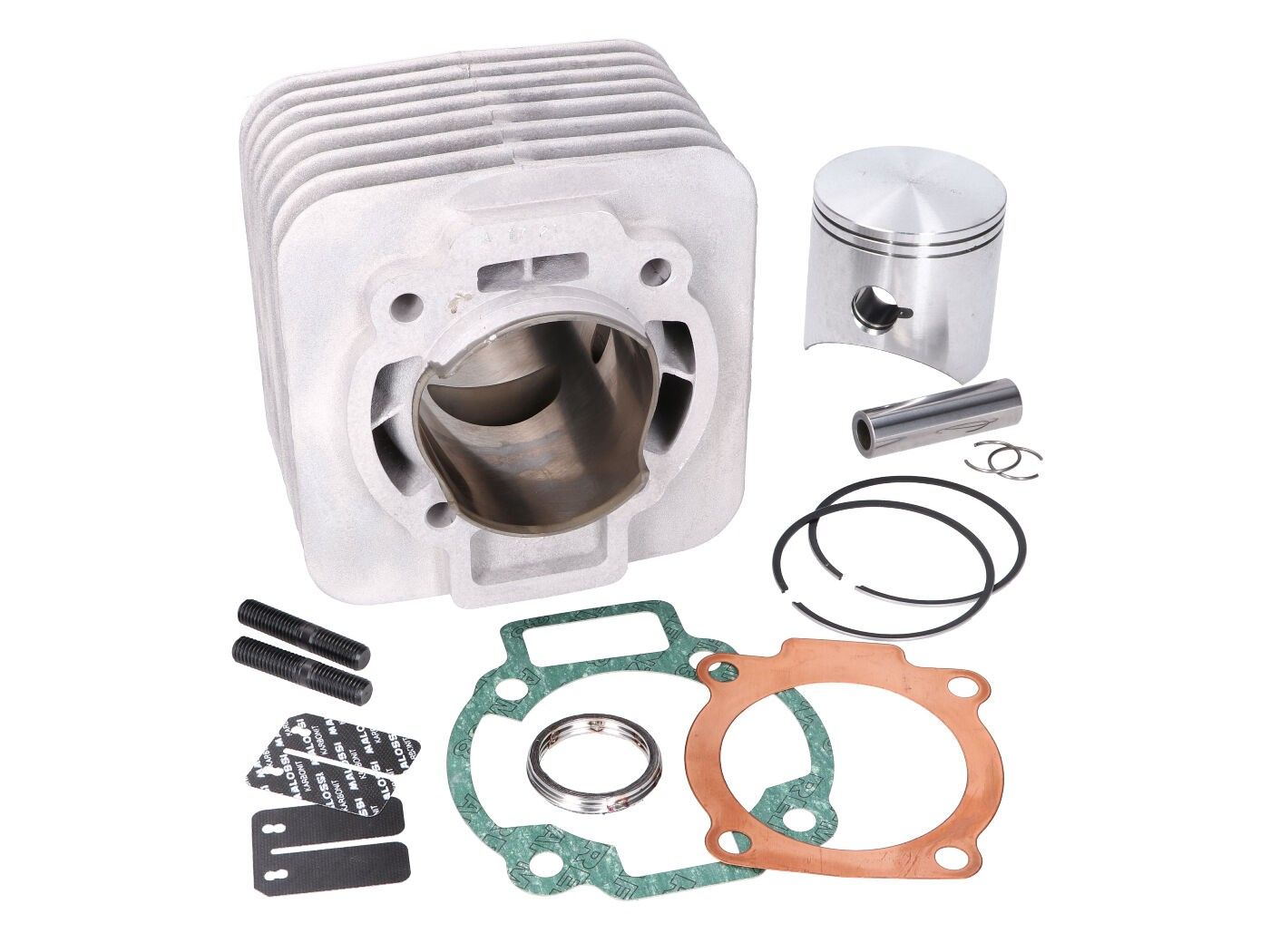 Pozor: Ta komplet jeklenk je dostavljen brez glave valja. Lahko se uporablja originalna glava cilindra. Za to potrebujete tesnilni set Malossi s št. M.118337. Priporočamo lažje valje variatorja, novo vžigalno svečko in glavna šoba naj bo okvirno 8-12% večja.