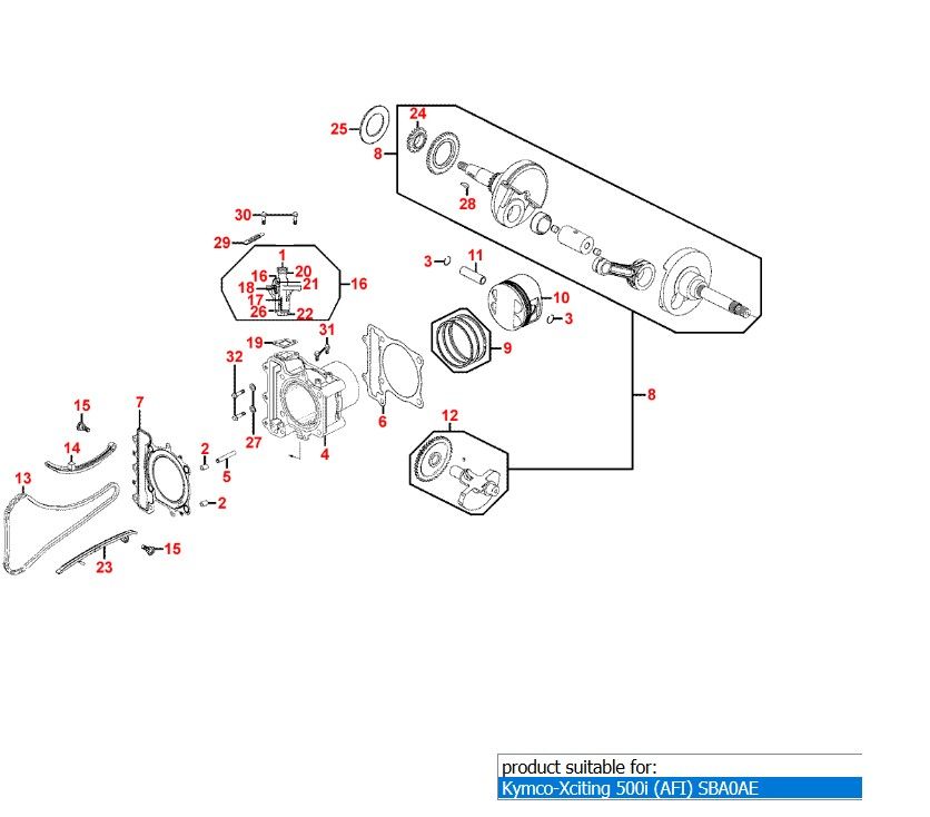 Batni obročki set za Kymco Xciting 500 , 500i , MXU 500 , UXV 500 (št.9)