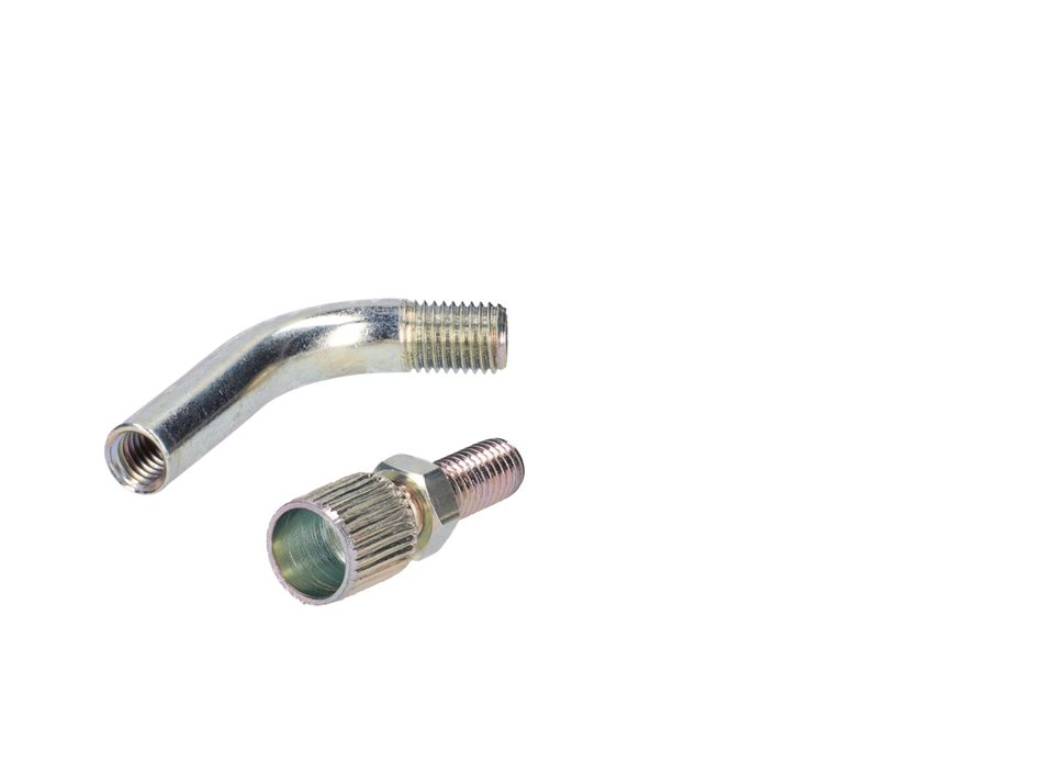 45° kotno koleno za pletenico – bovden plina, primeren za uplinjače Dellorto tipa SHA. Primerno tudi za druge uplinjače, ki uporabljajo isti navoj na pokrovu uplinjača. S tem cevnim lokom se lahko napeljava plinskega kabla individualno prilagodi.