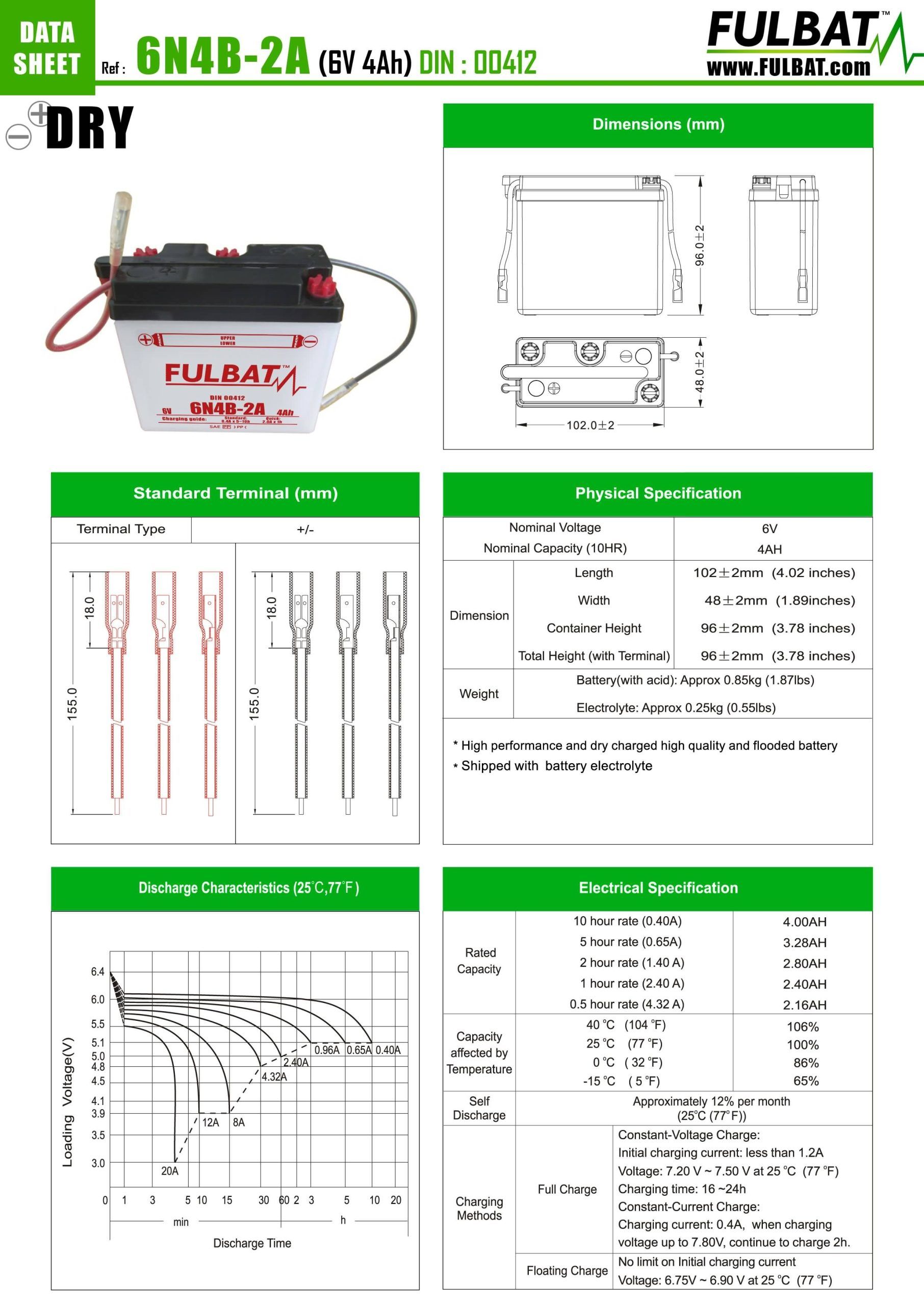 Akumulator Fulbat – 6V 6N4B-2A z kislino