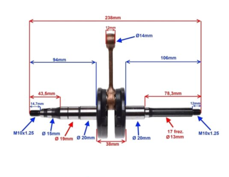 Kakovostna 10-sorna gonilna gred znamke WM, zasnovana kot nadomestek originalne gredi pri skuterjih z motorjem Minarelli Horizontal. Namenjena je izključno za uporabo z originalnimi cilindri (serijskimi 50ccm), saj ohranja tovarniško razmerje in pozicijo bata.