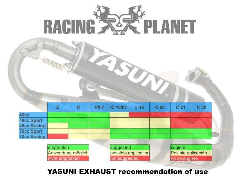 Carrera 16 je mlajši brat izpuha skuterja Yasuni Carrera 21. Z nekoliko manjšo prostornino in daljšim ohišjem izpuha. Odlikujejo ga kakovost in nekateri uspešni detajli, kot so večkratne ojačitve na območjih, občutljivih na vibracije. Omogoča visoko največjo hitrost in je zato idealen izpuh za motorje, ki so zasnovani za visoke hitrosti.