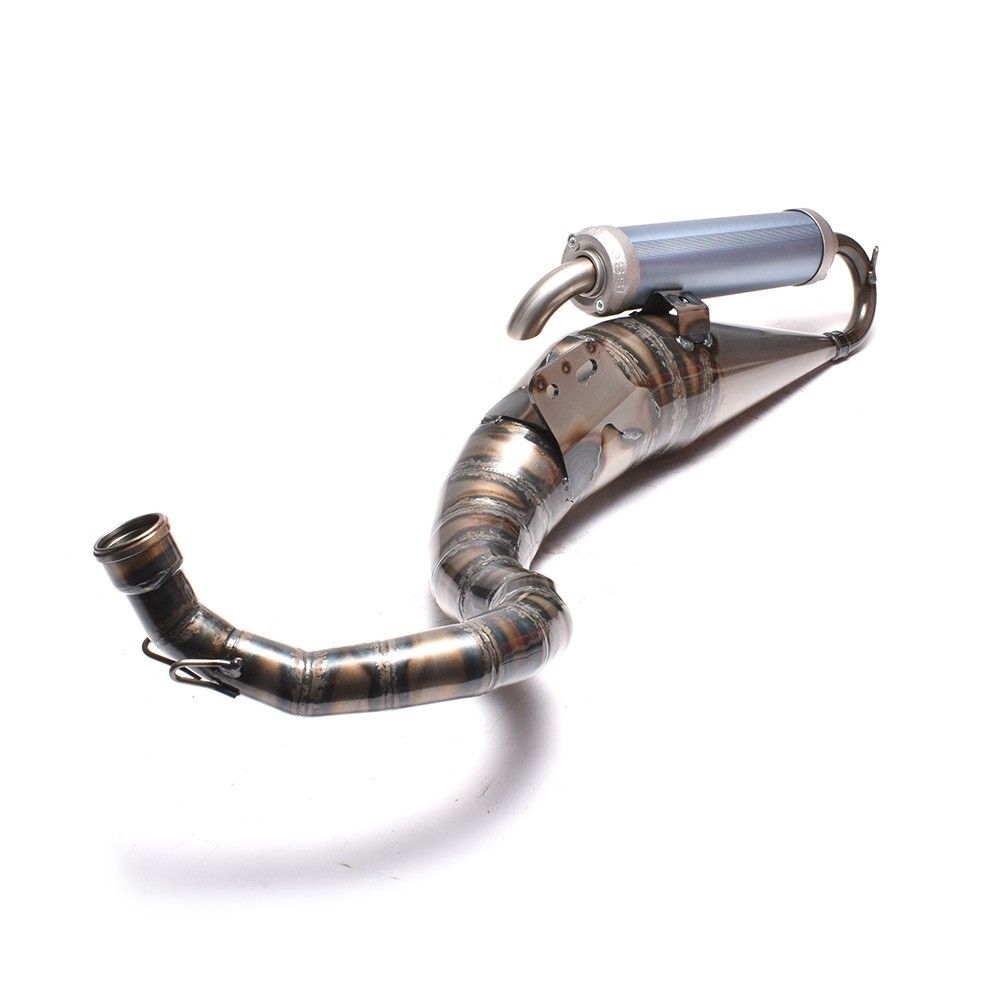 Zasnovan za montažo na vse Piaggio Ciao, Bravo, Si in Grillo v kombinaciji s kompleti cilindrov Malossi iz aluminija in 27 mm odprtino. Izdelano iz posebne jeklene pločevine (debeline 0,8 mm) z uporabo robotskih TIG in MIG varilnih postopkov ter ročnega plinskega talilnega varjenja. Izpuh je bil pobarvan s prozorno zaščitno barvo.