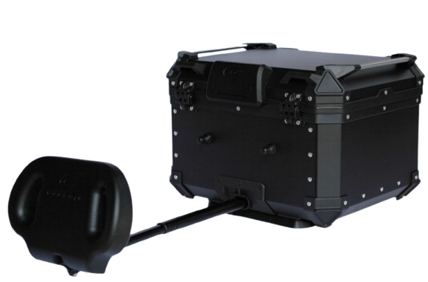 Visokokakovosten Top Box za motorje, skuterje ali štirikolesnike, izdelan iz aluminija, z notranjo prostornino 55 litrov. Kovček je opremljen z nastavljivim naslonjalom, ki se razstegne do voznika, kar omogoča boljšo držo med vožnjo in večje udobje na daljših relacijah.