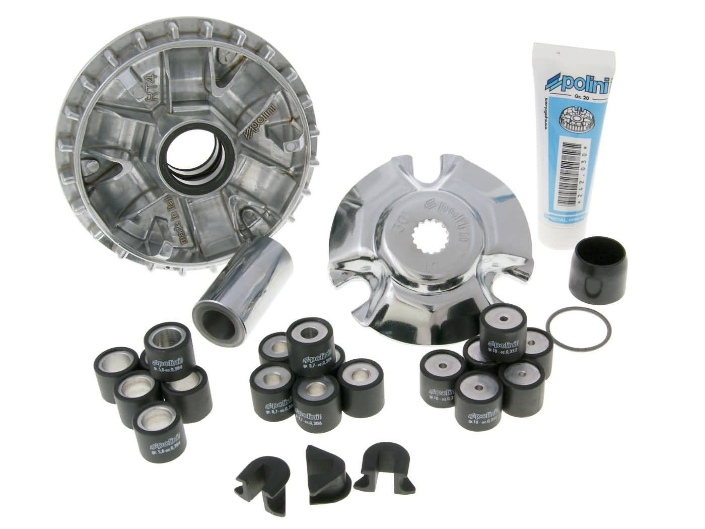 Polini Maxi Hi-Speed je eden najmočnejših variatorjev v ponudbi maxi skuterjev. Tu je bil poudarek na konstrukciji valjčnih gosenic, ki bolje izkoriščajo obstoječi razpon moči motorja kot pri originalnem variatorju. To pomeni, da se pretvorba variomatic spremeni v ugodnejše območje navora. Rezultat: boljši pospešek in nekoliko višja končna hitrost.