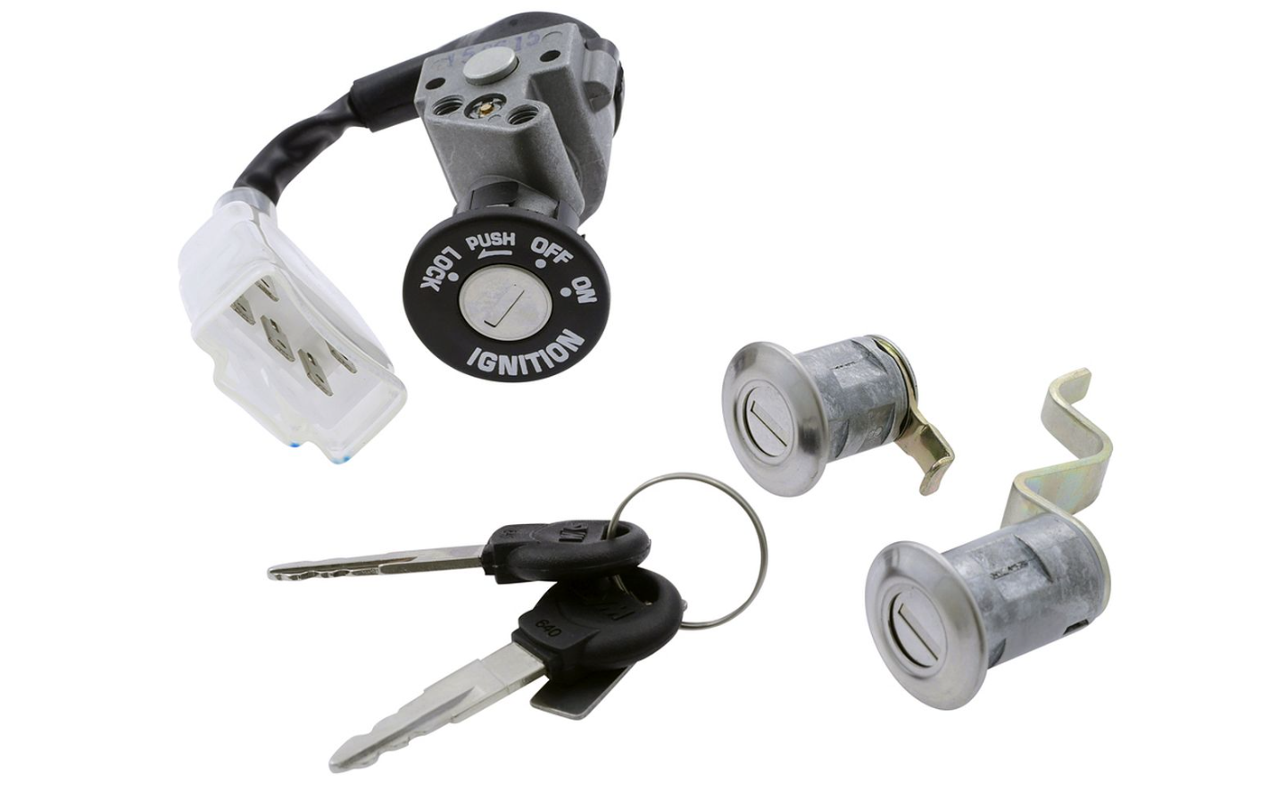 Komplet ključavnic SYM (3-delni) je originalni nadomestni set ključavnic z vžignim stikalom, zasnovan za modele SYM Jet EuroX, Jet 50 in BasiX 50 z 2T AC motorjem. Set vključuje tri ključne komponente za popolno zamenjavo sistema zaklepanja, kar zagotavlja varno, zanesljivo in brezhibno delovanje vžiga ter zaklepanja vozila.