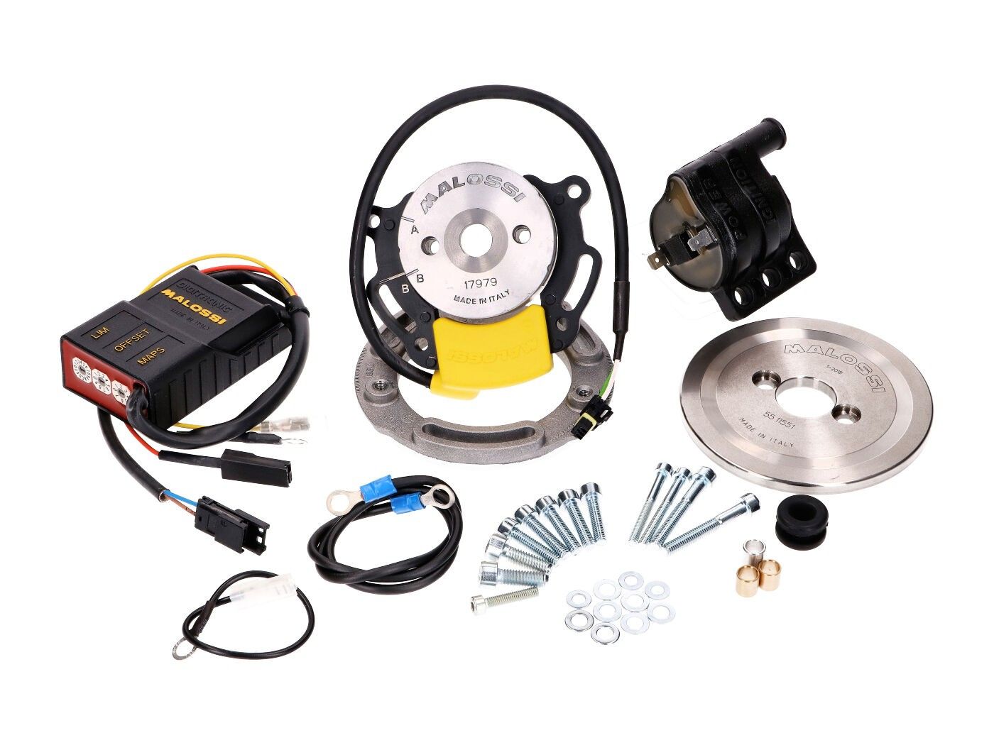 Notranji sistem za vžig rotorja, ki ga je razvil Malossi, temelji na najnovejši dirkalni tehnologiji. Tak nov sistem je nastal zaradi potrebe po premagovanju tehničnih omejitev običajnega vžiga vztrajnika, ki ne more zagotoviti konstantne moči več kot 10.000 vrt / min in povzroča težko rešljive težave pri namestitvi na dirkala vozila