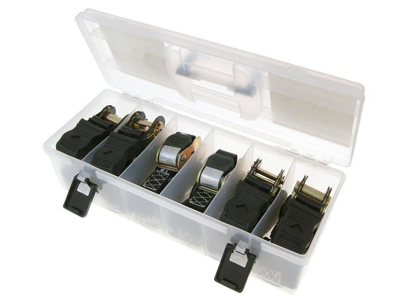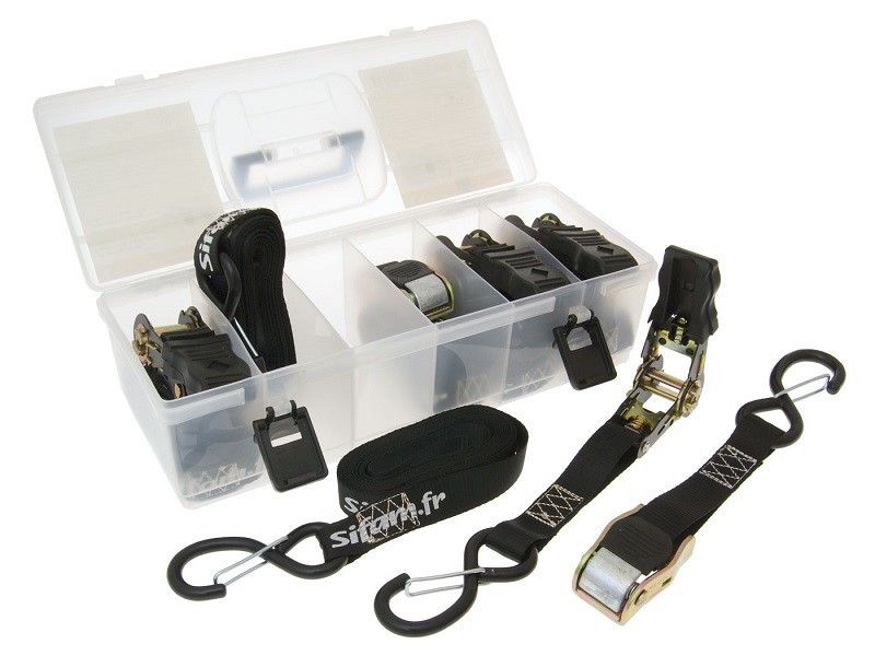 4 kos 25mm x 4.5m z ragljo (680kg)2 kos 25mm x 3.6m z vpenjalno zaporo (400kg)