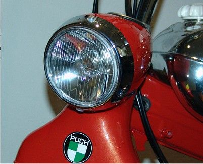 Vložek za žaromete za 50-kubične mopede (npr. ta oblika je bila prvotno vgrajena v mopede Puch , Tomos ). Pritrditev na svetilko poteka preko rež, ki sta na vrhu in na dnu. Žarnica 12V 25/25W Bilux je vključena v dobavi.