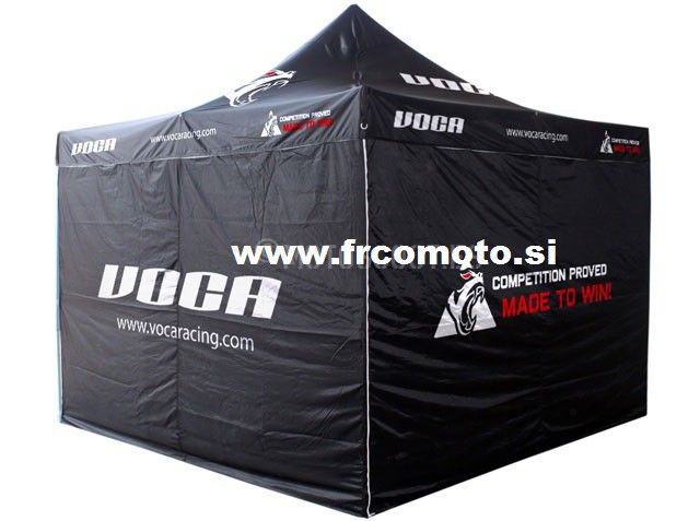 Šotor je narejen iz aluminijaste, hitre postavljive, konstrukcije, strehe in stenskih oblog.