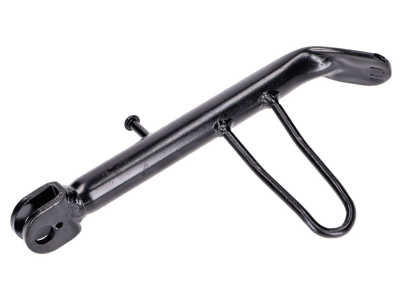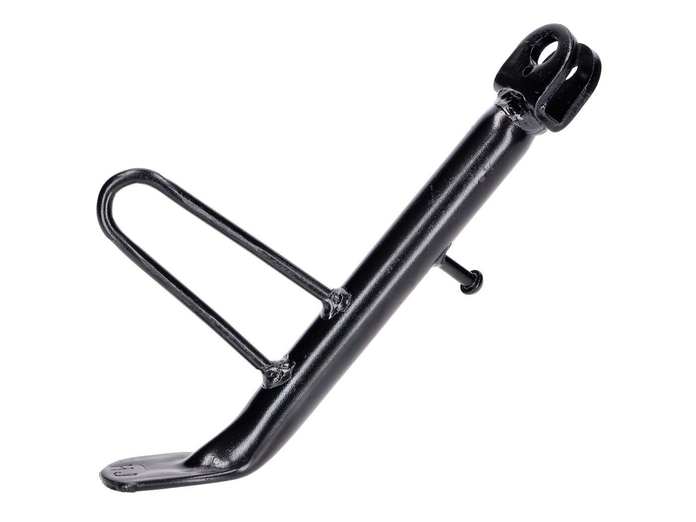 Stransko/podporno stojalo za 50cc 4-taktni skuter, izdelan na Kitajskem. Stojalo je primerno za večino vozil. Ker obstajajo različni slogi karoserije, lahko proizvajalci uporabijo drugačno stransko stojalo. Primerjajte fotografijo izdelka s stojalom, ki ga potrebujete!