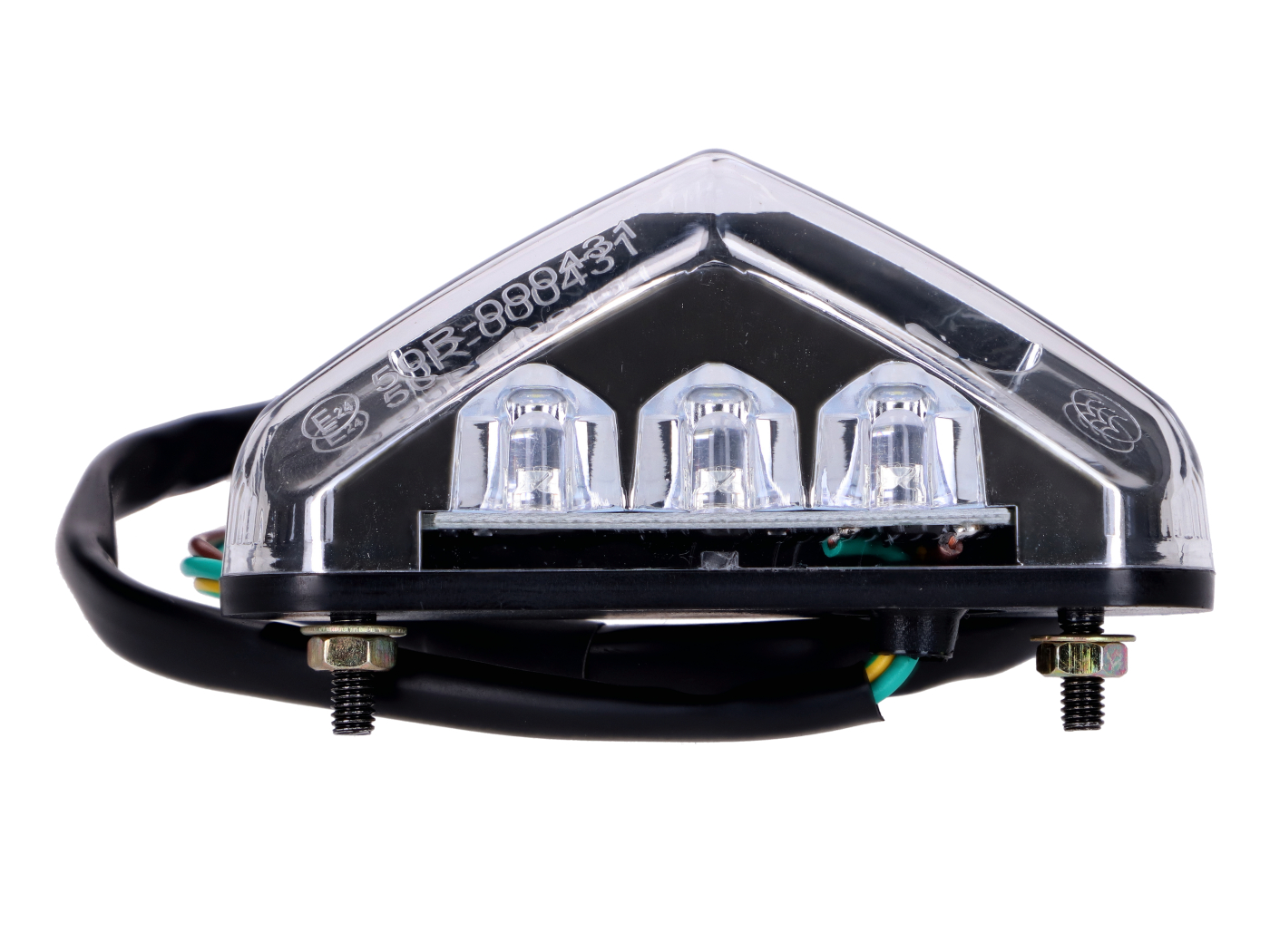 Univerzalna zadnja luč s prozornim steklom in 6 LED-diodami. Vključuje tudi osvetlitev registrske tablice (3 LED-diode). LED zadnja luč se pritrdi z dvema priloženima vijakoma.