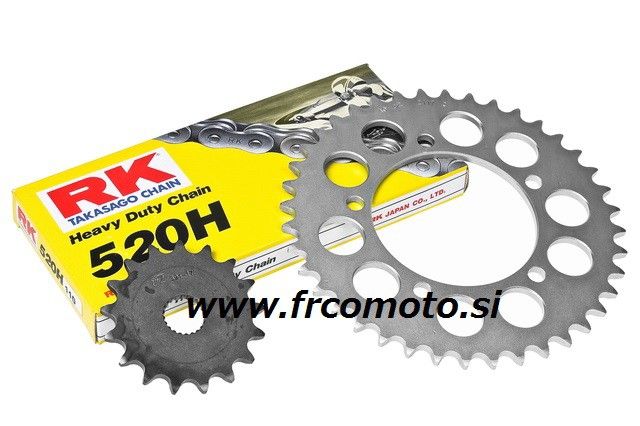 V setu veriga 520 ,  prednji zobnik 17z. in zadnji zobnik 40 zob