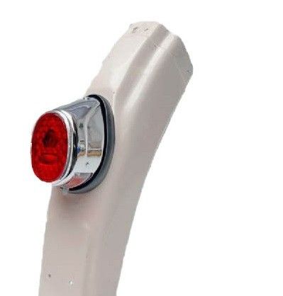 Klasična ovalna zadnja luč za mopede z debelo gumijasto podlogo. Zaradi podnožja se zadnja luč zelo dobro pritrdi na ukrivljene površine in se zato lahko univerzalno uporablja za različne mopede ali manjša motorna kolesa.