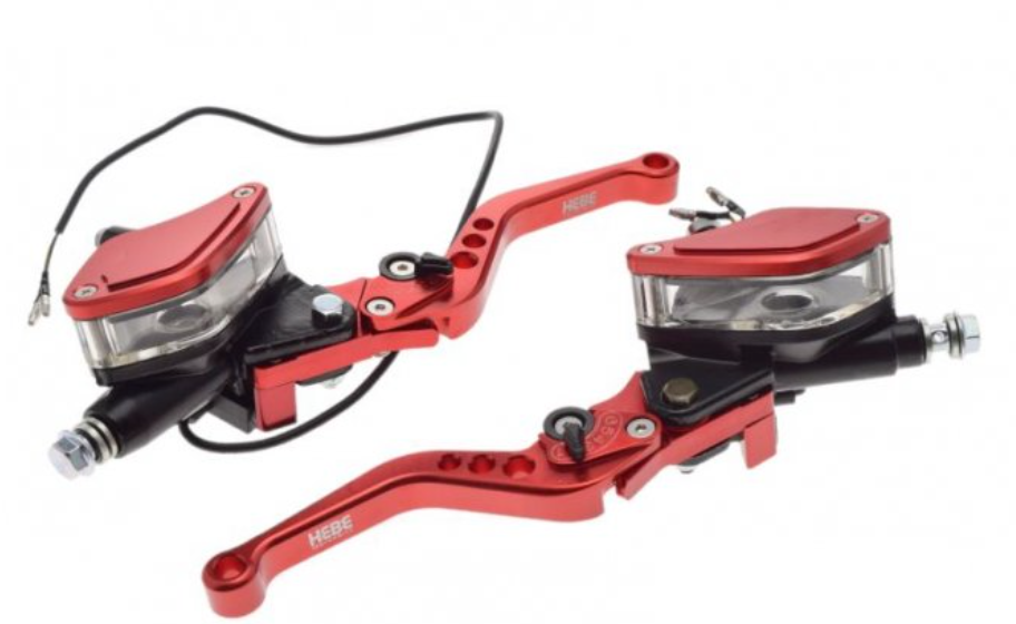 Stilski in funkcionalni CNC ročki v rdeči barvi z nastavljivimi ročicami in prozorno posodico za olje. Odlična izbira za vse, ki želijo izboljšati videz in občutek na ročicah – pa naj bo to pitbike, motor, moped ali custom projekt.