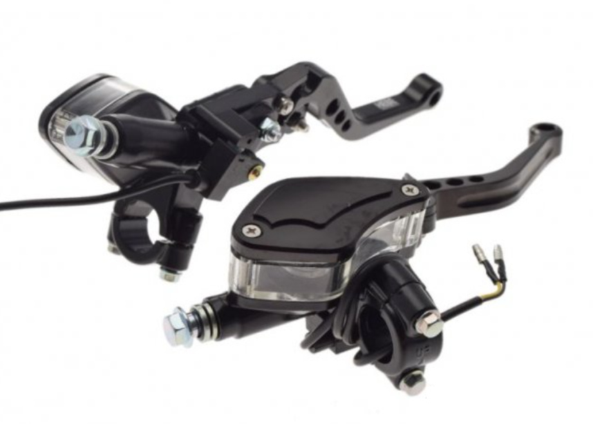 Visokokakovosten set črnih CNC ročk za zavore in sklopko z nastavljivimi ročicami ter prozornim rezervoarčkom za olje, ki doda vozilu profesionalen in atraktiven izgled. Popolna kombinacija funkcionalnosti, stila in vzdržljivosti za tiste, ki želijo nekaj več.