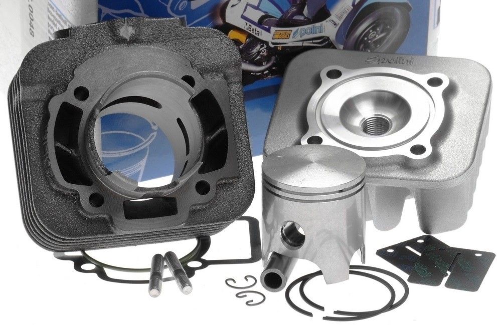 - Komplet športnih valjev iz sive litine 70cc iz Polinija za skuterje z zračno hlajenim 50ccm motorjem Piaggio.